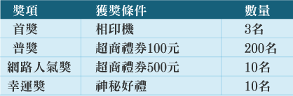 - 網路人氣獎:網路票選獲得票數前十名投稿者。